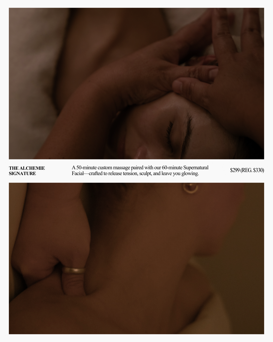 This experience pairs our 50-minute custom massage with our 60-minute Supernatural Facial—each thoughtfully tailored to your body and skin’s unique needs.